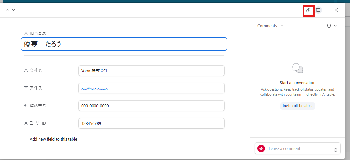 事前準備で作成したAirtableのGridの赤枠部分をクリックしてください。