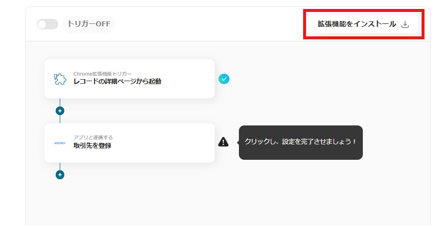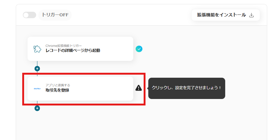 拡張機能のインストールが完了したら、赤枠内「取引先を登録」をクリックします。