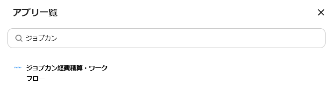 検索窓にジョブカンと入力し、ジョブカン経費精算・ワークフローをクリックしましょう。