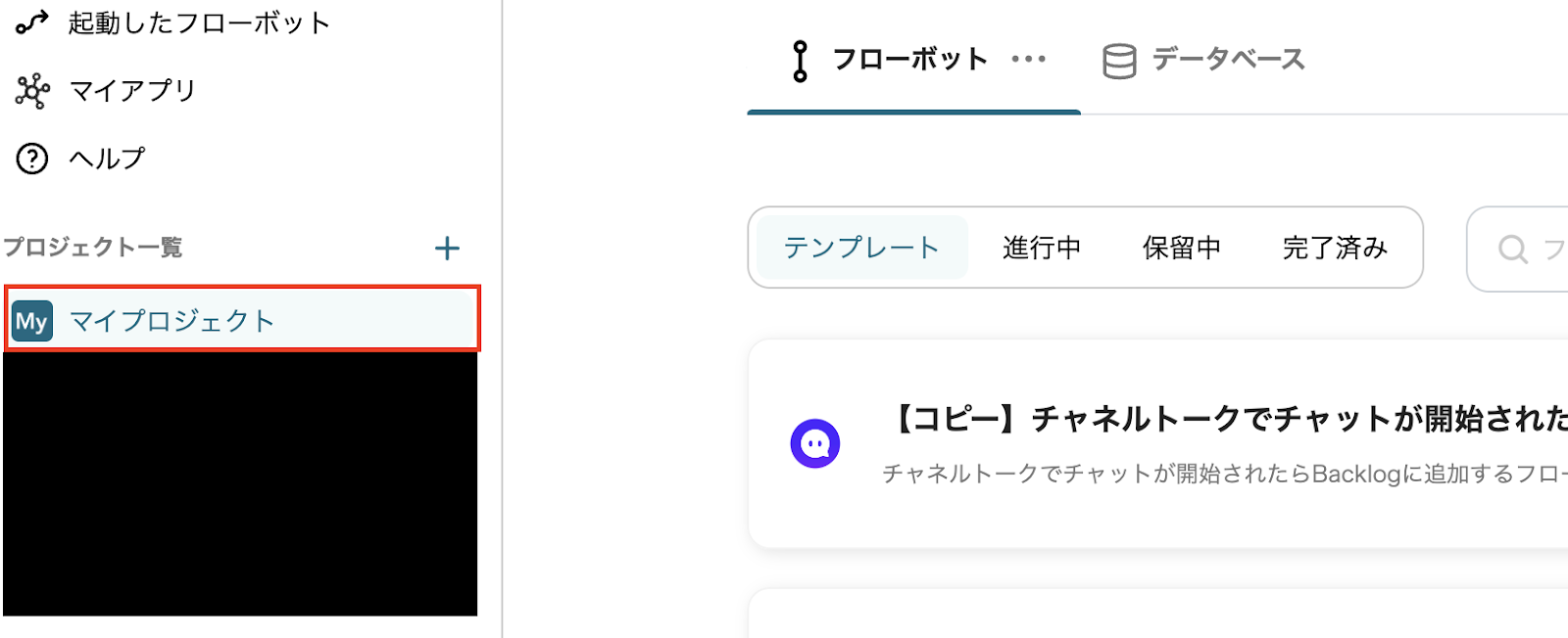 (1)コピーしたテンプレートは、Yoomアカウントの画面左側の「マイプロジェクト」で確認できます。