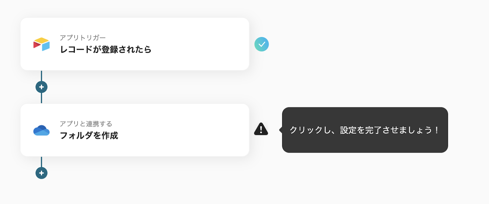 具体例として、Airtable側で登録した新規取引先の情報を基に、OneDrive側で新規フォルダを作成するため、情報の整合性を確保したままデータが登録されます。