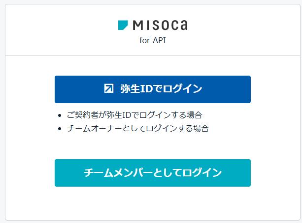 以下の画像のような画面が表示されるので、Misocaのアカウントでログインを行いましょう。