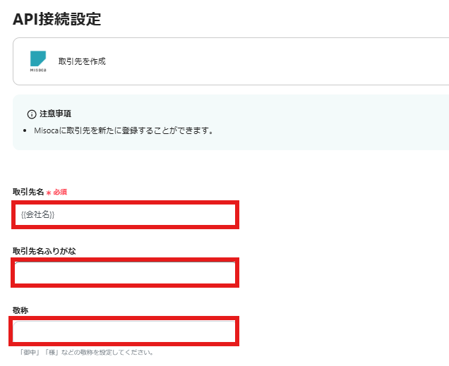 API接続設定が表示されるので、内容に従って入力しましょう。