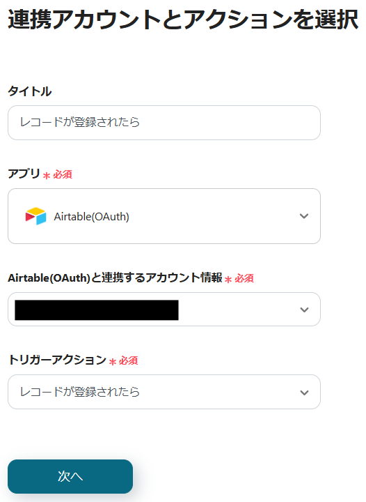 3.Airtableと連携するアカウントを確認し、「次へ」をクリックします。