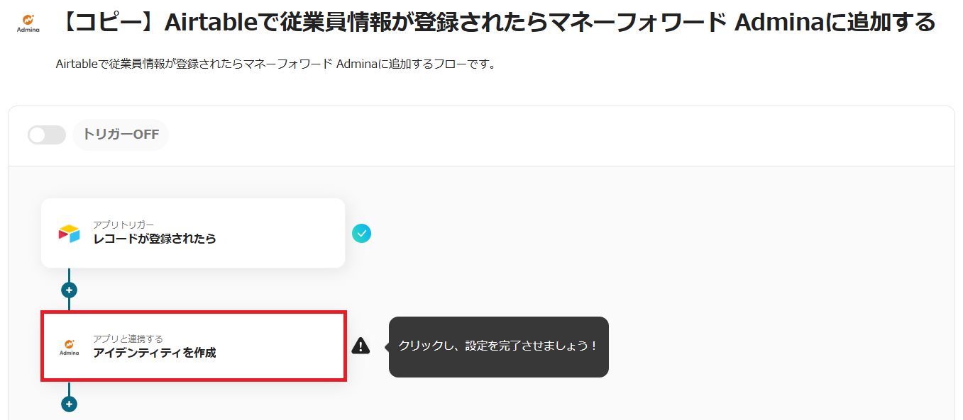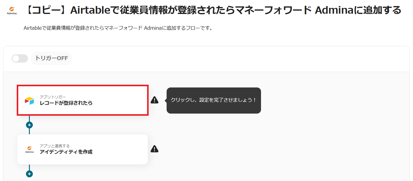 5.トリガーをONにすると、Airtableで従業員情報が登録されるたびに自動でマネーフォワード Adminaに追加されます。