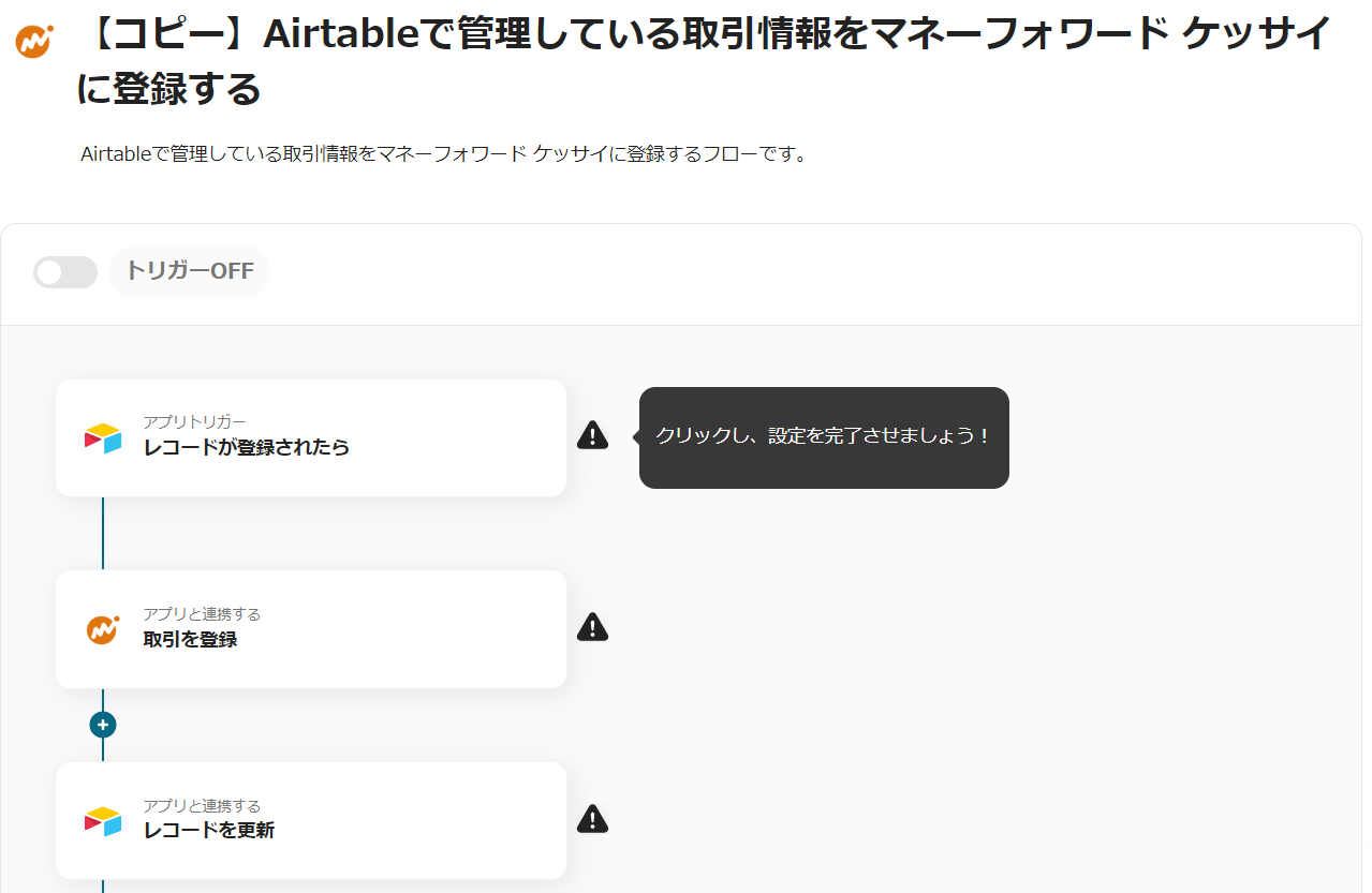 1.マネーフォワード 掛け払いで請求書発行が完了したら、Airtableに自動追加するフローです。