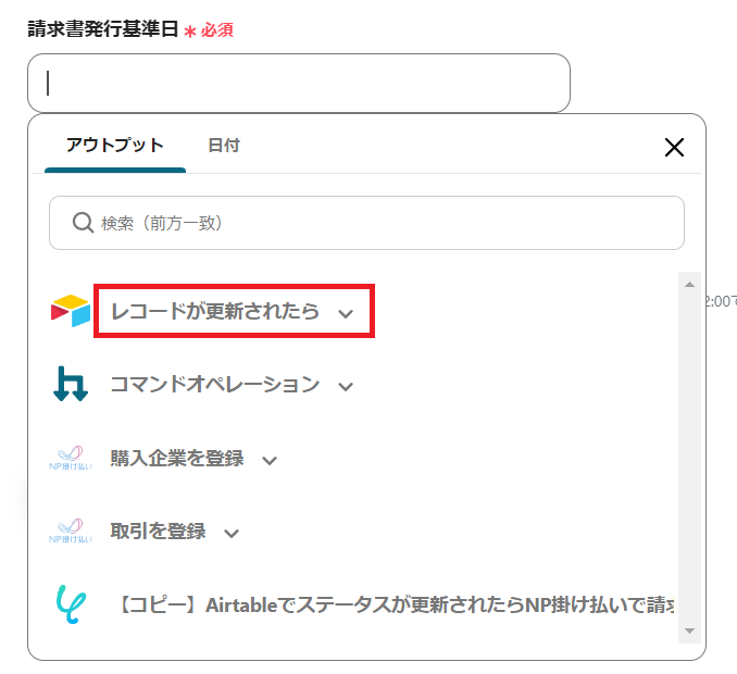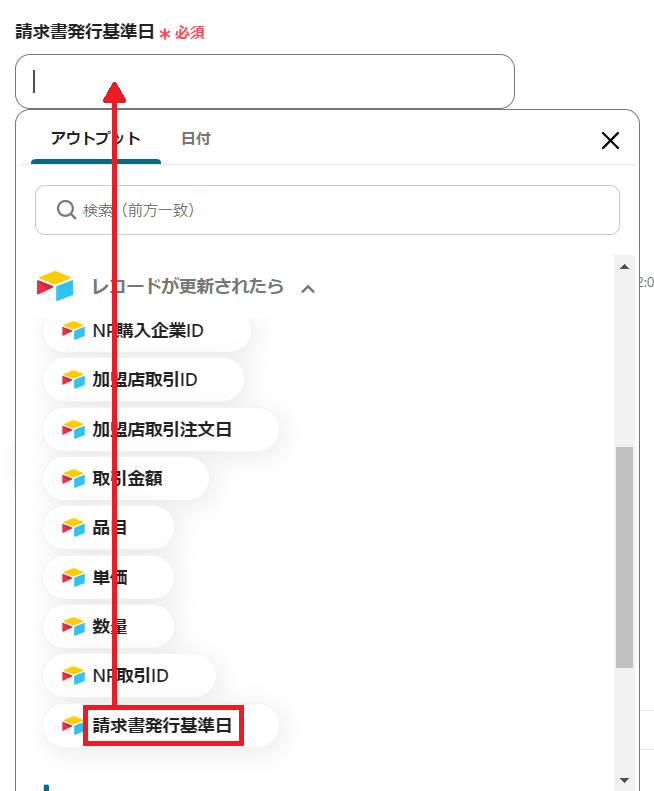 最終更新日時として登録している「請求書発行基準日」を選択しましょう。