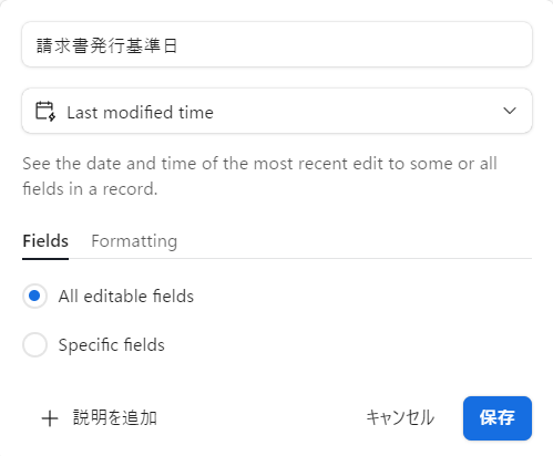 請求書発行基準日は、「最終更新日時(Last Modified Time)」でフィールドを作成しましょう。