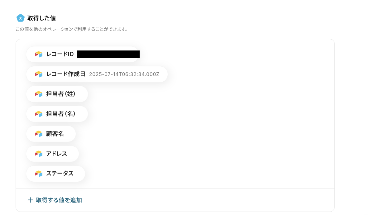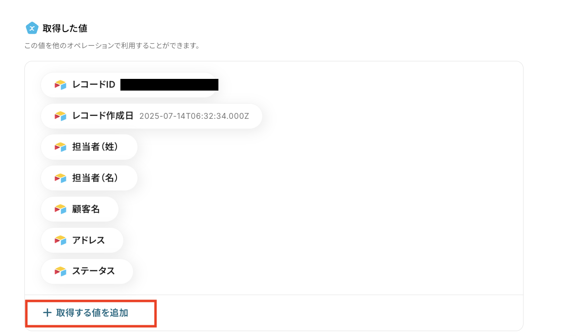 『+取得する値』をクリックします。