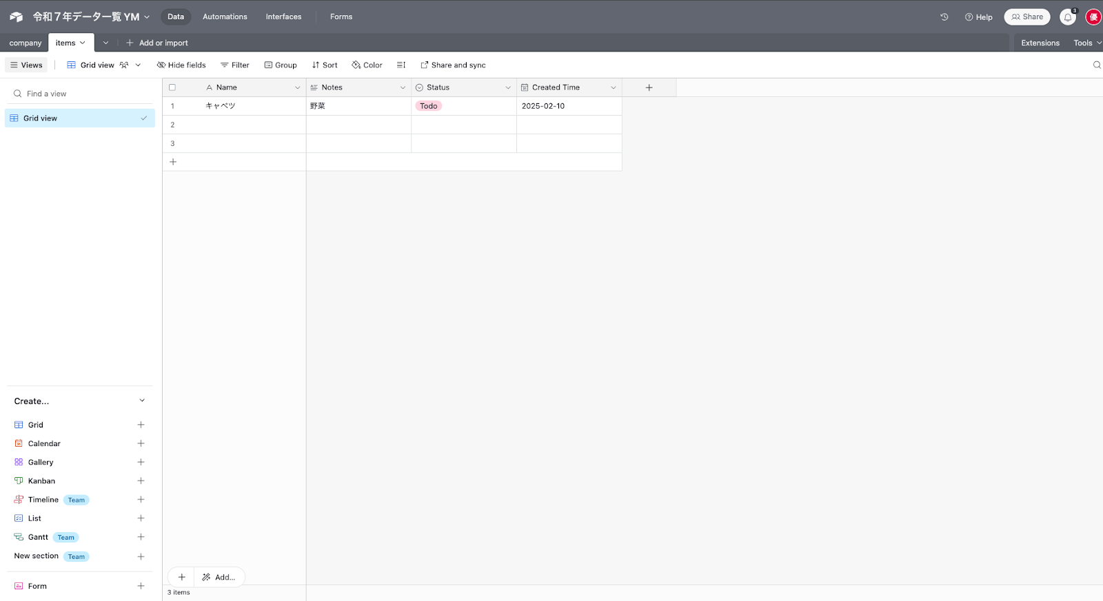 その後、「Grant access」をクリックすると、Airtableの連携が完了します。