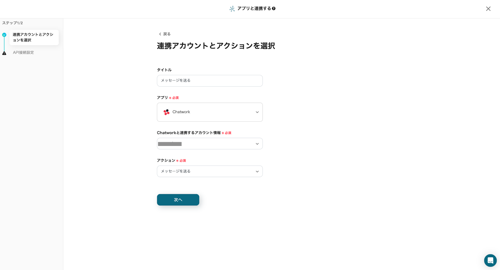 タイトルの任意編集とアカウント情報の確認を行い、「次へ」をクリックしてください。