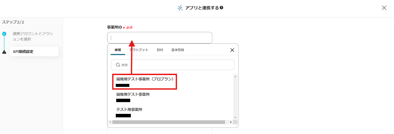 登録済みの事業所が一覧表示されます。連携を行う事業所を選択してください。
