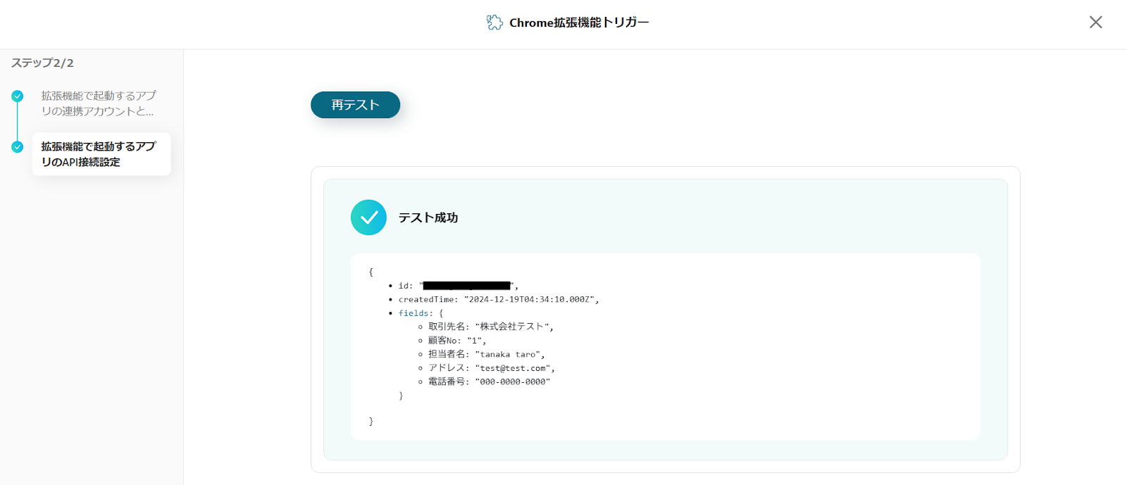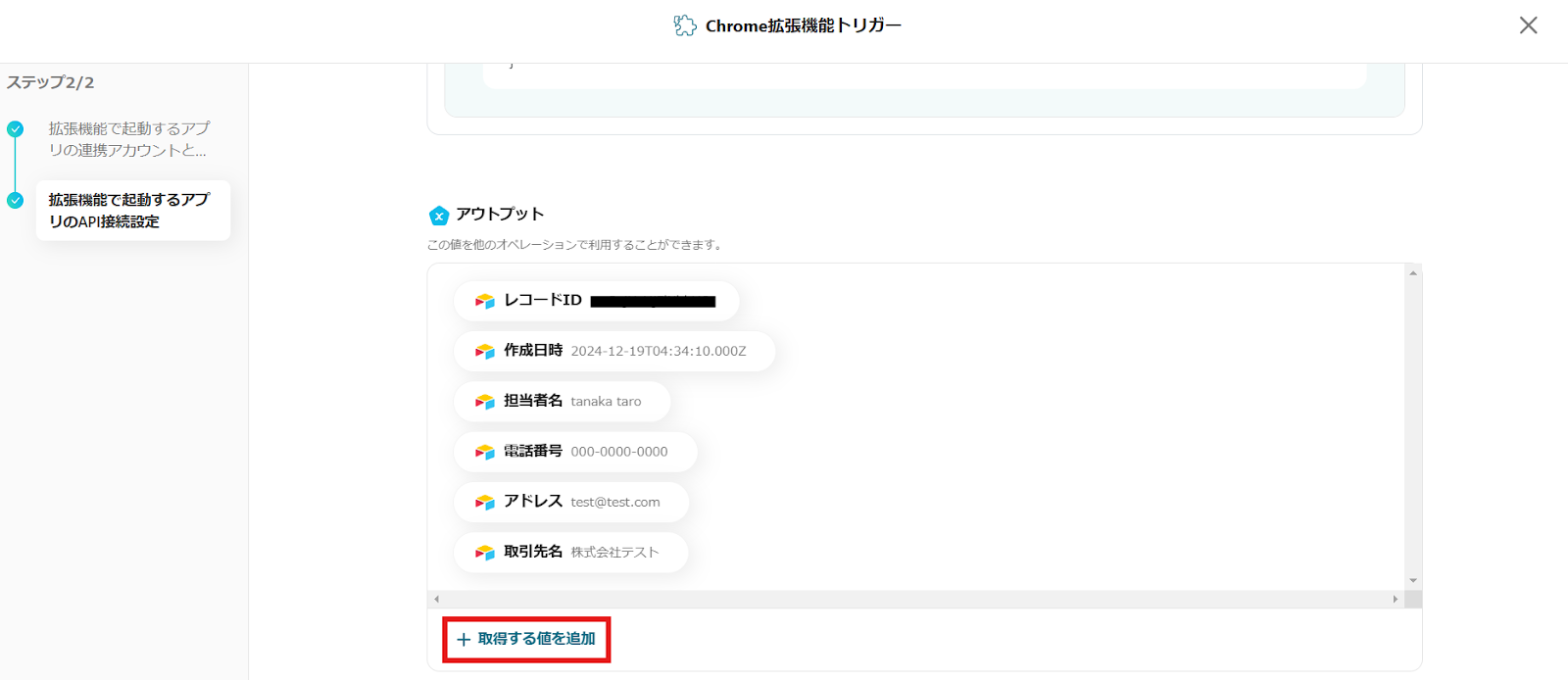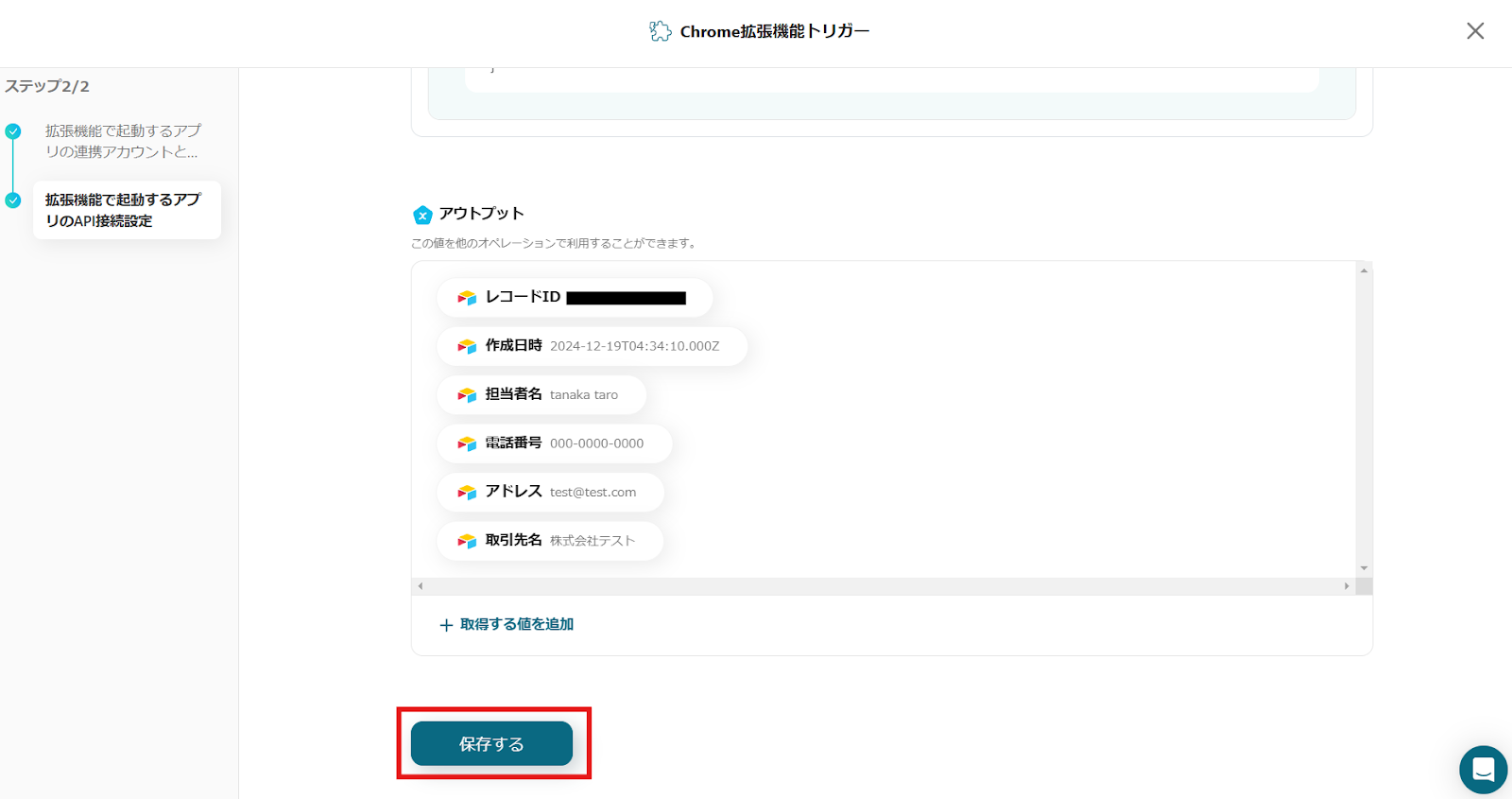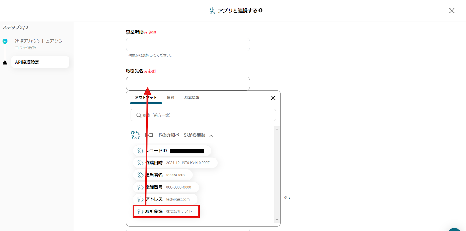 画像のように青く「テスト成功」と表示が出たら、freee会計に反映したいAirtableのデータをJSONPATHでアウトプットとして取得します。
