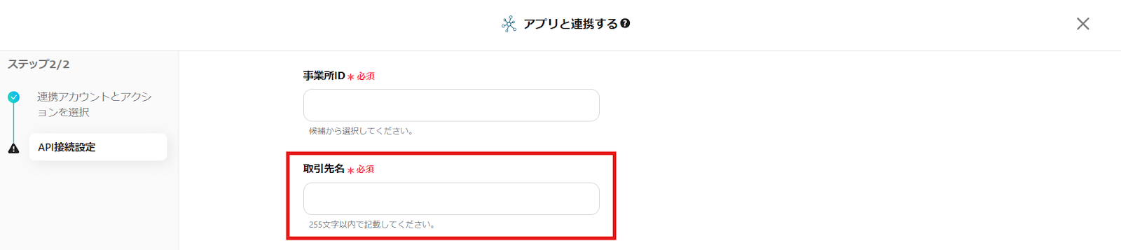 続けて取引先名を入力します。ボックスをクリックしましょう。