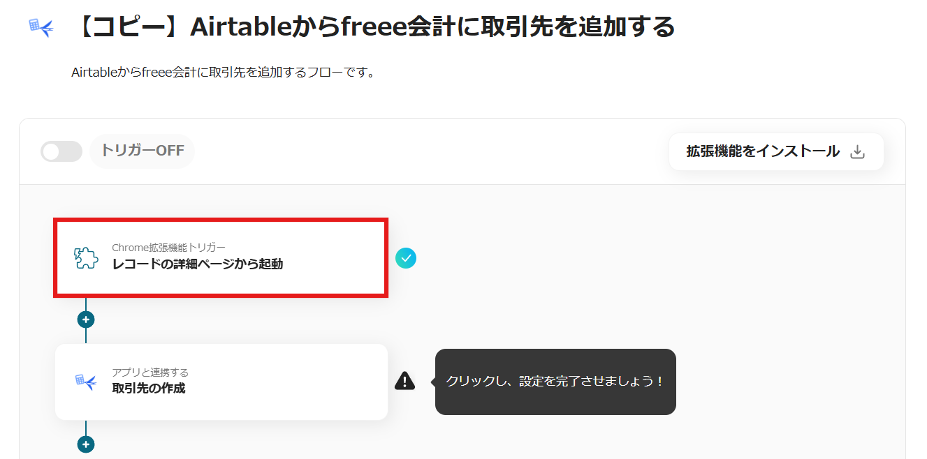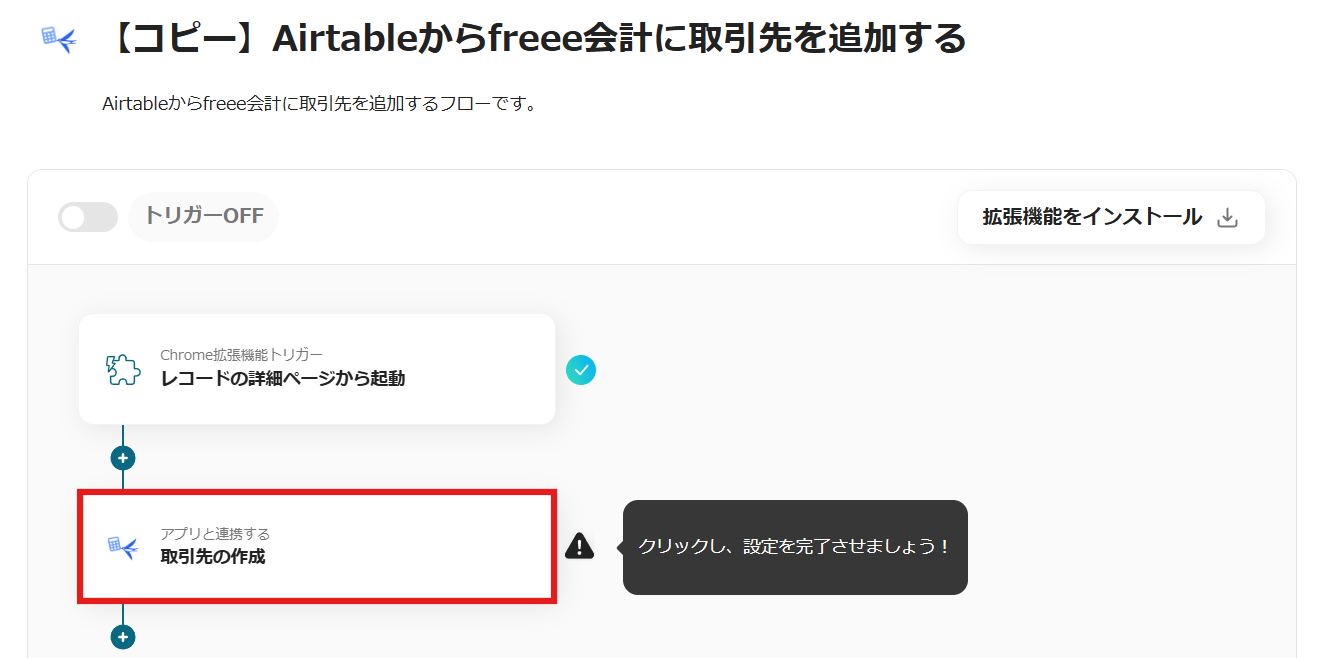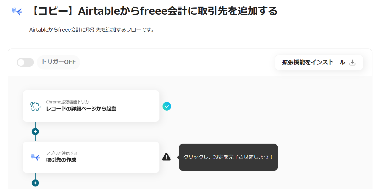 Chrome拡張機能のAPIをAirtableの詳細ページからクリックのみで起動し、Airtableに格納している取引先データを受け取ることができます。その後、freee会計の提供するAPIを用いて取引先データの自動登録が可能です。