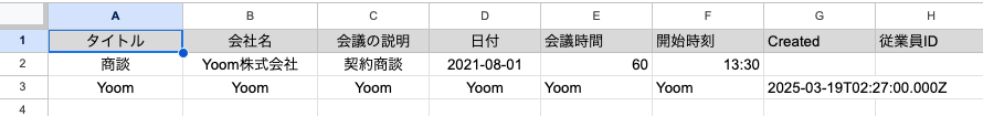 無事にAirtableの情報が指定のスプレッドシートに反映されましたね。