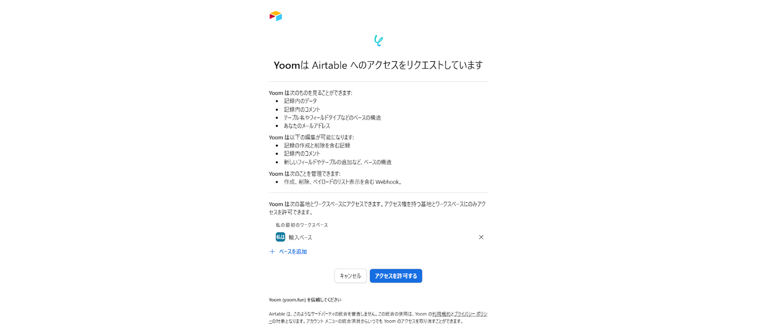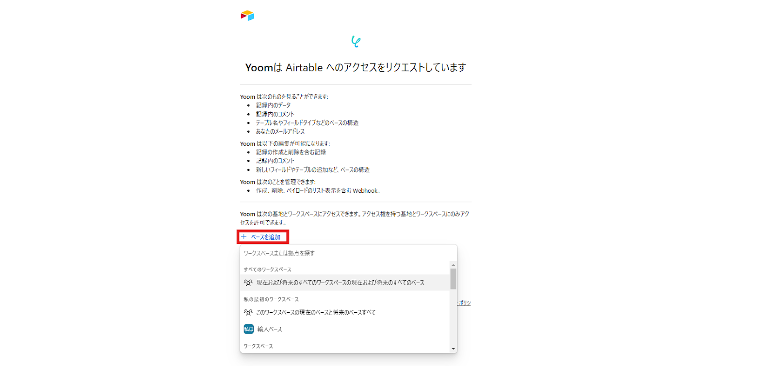 ・AirtableとSlackのそれぞれとYoomを連携してください。