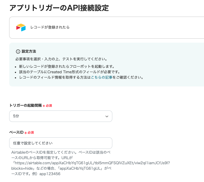 ステップ3 アプリトリガー「レコードが登録されたら」