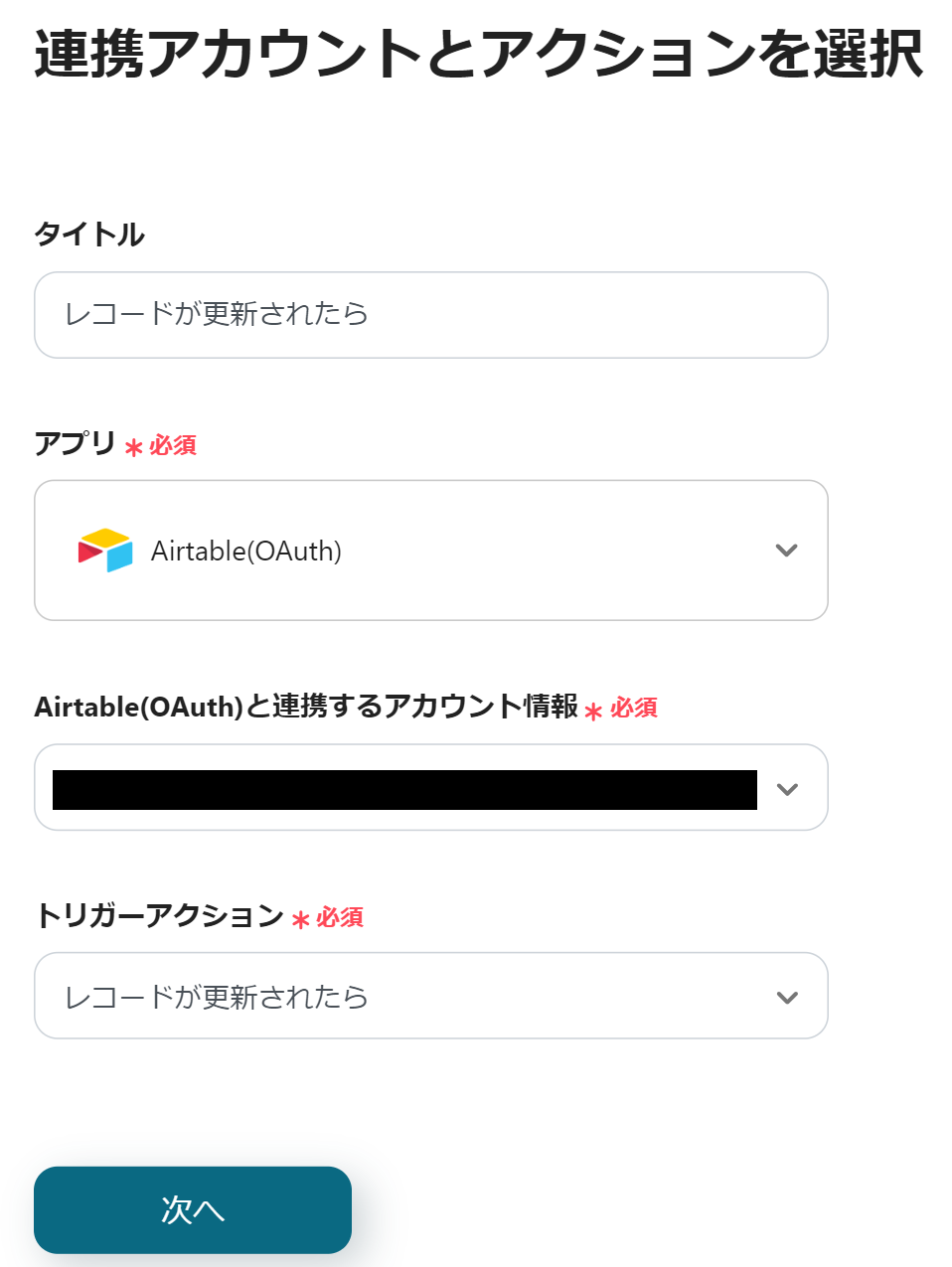 最初に、Airtableの「レコードが更新されたら」をクリックします。