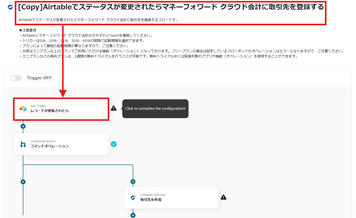 それではここからノーコードツールYoomを使って、「Airtableでステータスが変更されたらマネーフォワード クラウド会計に取引先を登録する」方法をご説明します。