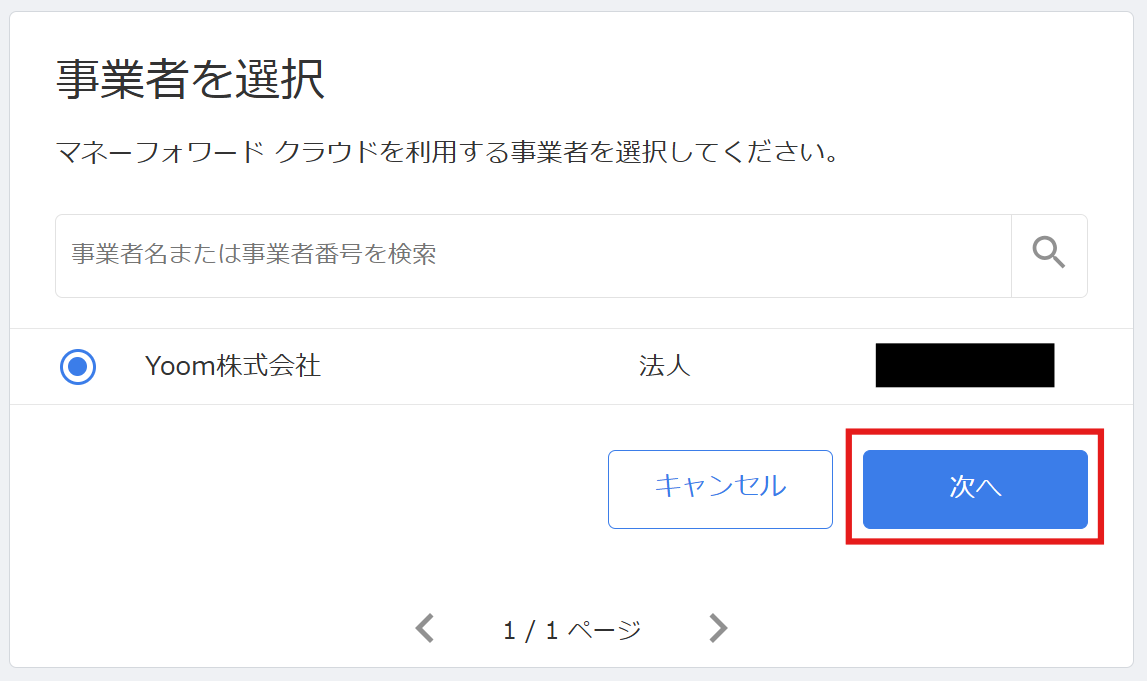 次に、事業者を選択して「次へ」をクリックしましょう。