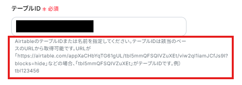 5.「テーブルID」は、入力欄下の説明に従って、入力してください。