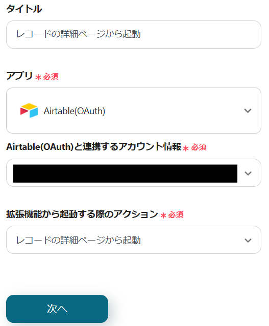 6.Airtableと連携するアカウントを確認し、「次へ」をクリックします。