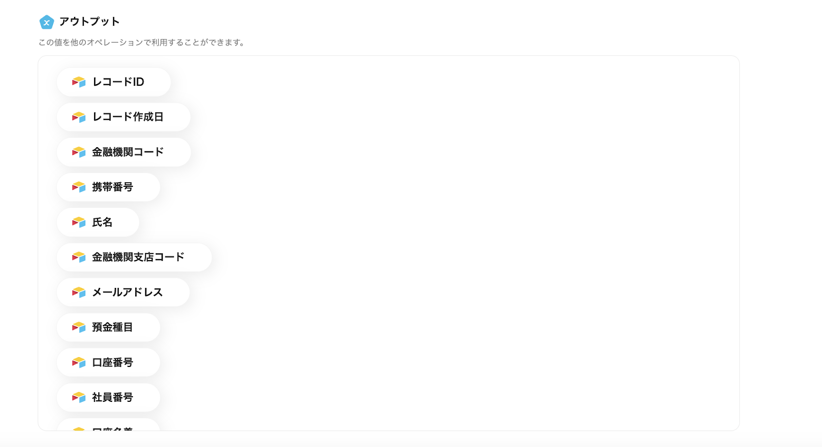 アウトプット情報は、「この値を他のオペレーションで利用することができます。」という注釈の通り、この後のステップで引用・活用できます。