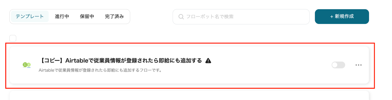 では、「Airtableで従業員情報が登録されたら即給にも追加する」のテンプレートを使ったフローボットを作成していきましょう。