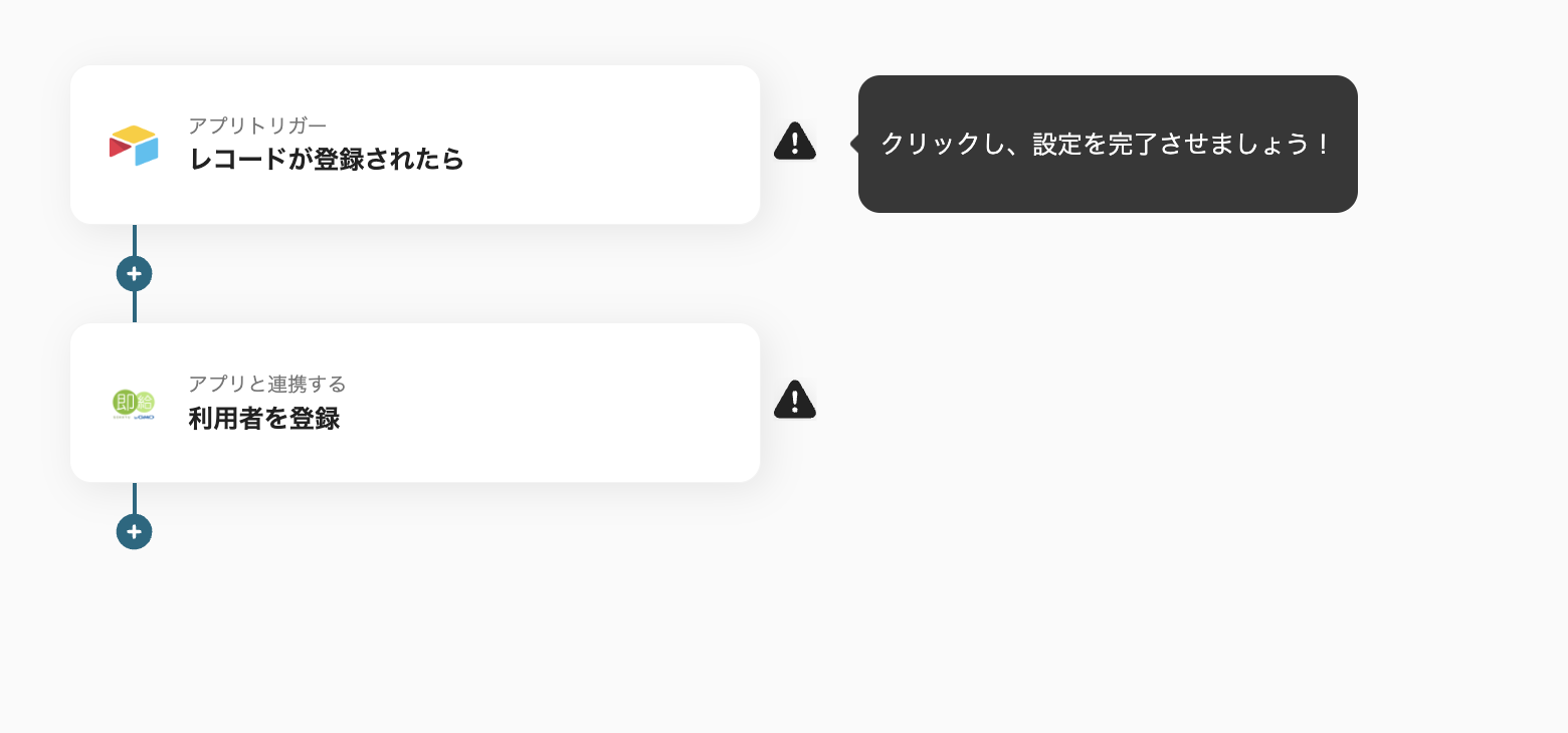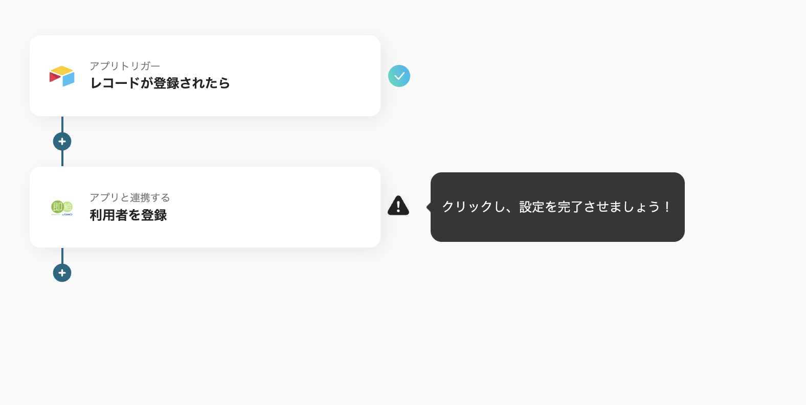(2)1つ目のステップ「レコードが登録されたら」をクリックします。