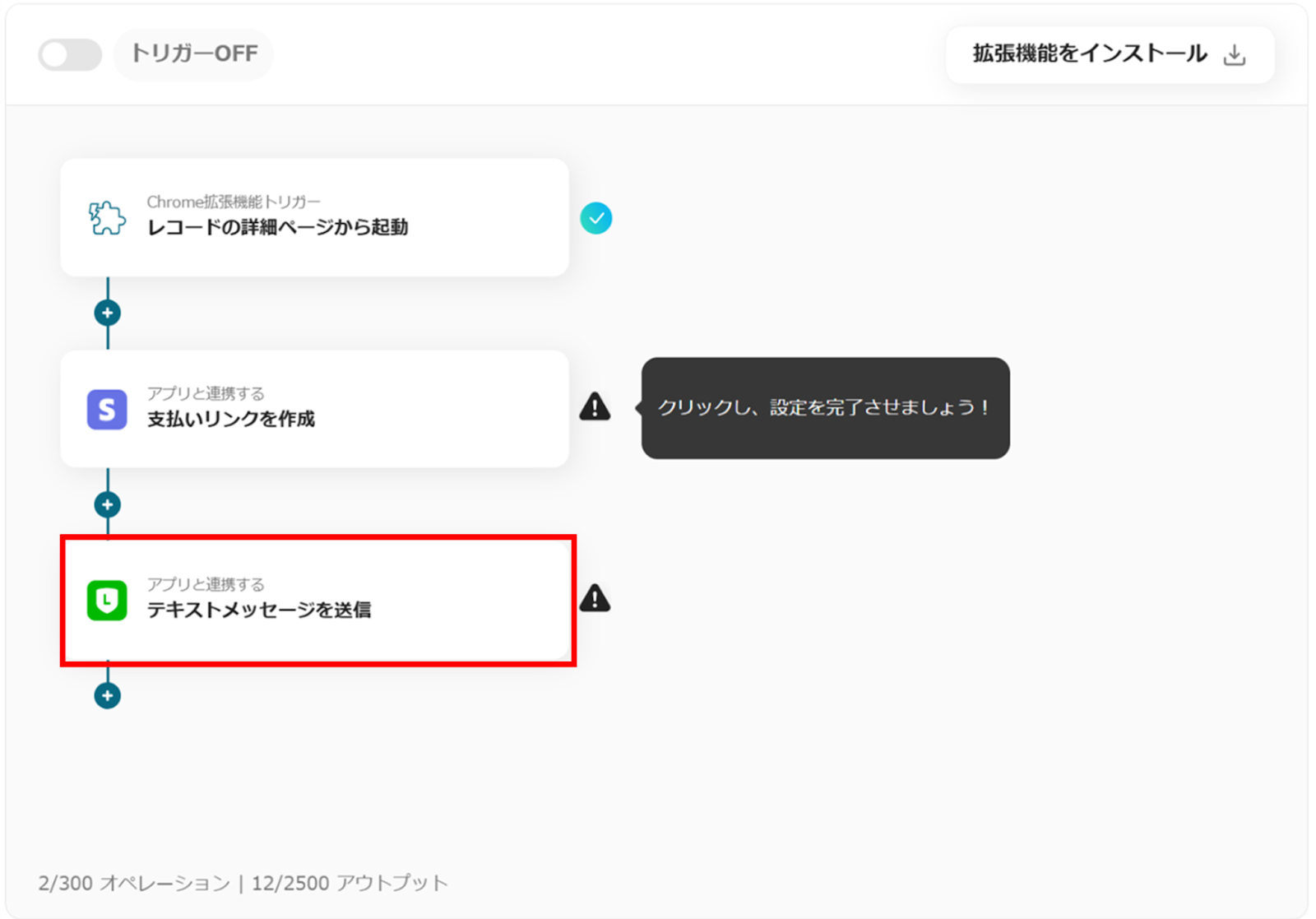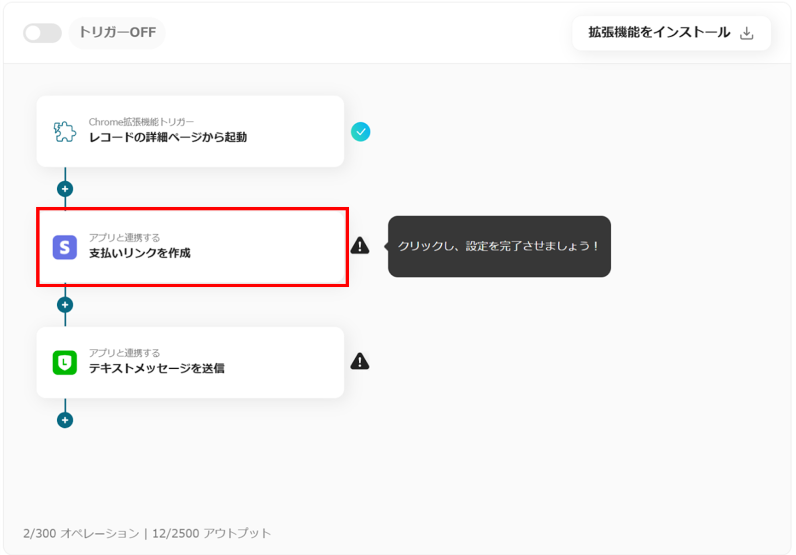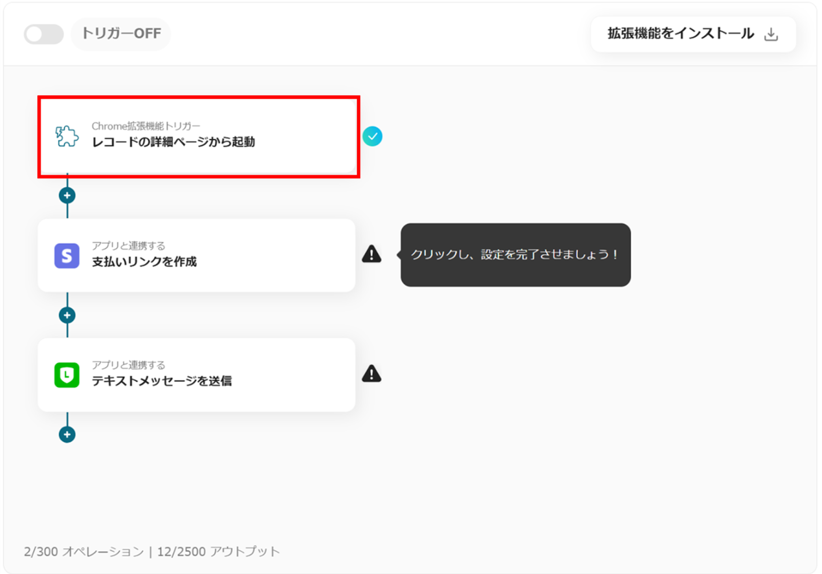 Chrome拡張機能トリガーの「レコードの詳細ページから起動」をクリックします。