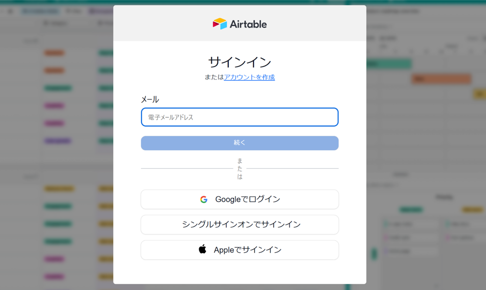 (3)Airtableのサインイン画面からお持ちのアカウントでログインを行ってください。