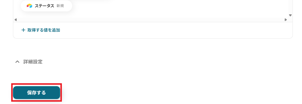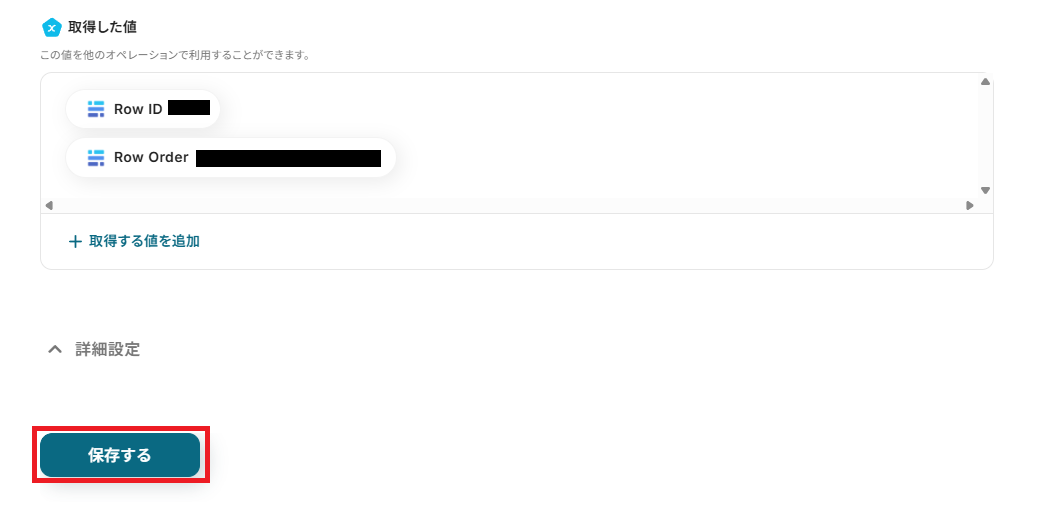 Baserowに連携したい取得した値が全て追加できたら、「保存する」を押して次に進みましょう!