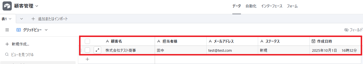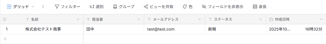 また、実際にレコードが追加されるので、Baserowを確認してみましょう。