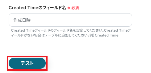 「Created Timeのフィールド名」は、作成したテーブルに合わせて設定しましょう。