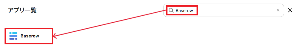 アプリ一覧の検索窓からBaserowを検索し、クリックします。