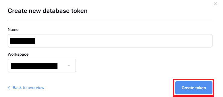 任意の名前でトークンを発行できます。設定が完了したら、「Create token」を押してください。