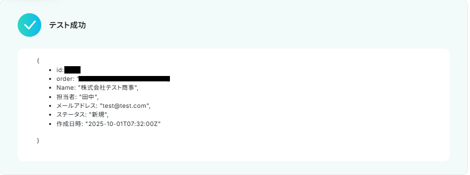 ここまで設定ができたら連携テストを行います。テストボタンをクリックしましょう。