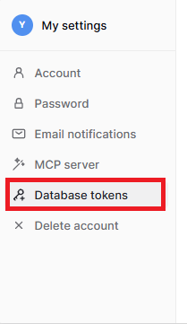 ログインし、My settingsから「Database tokens」を選択。