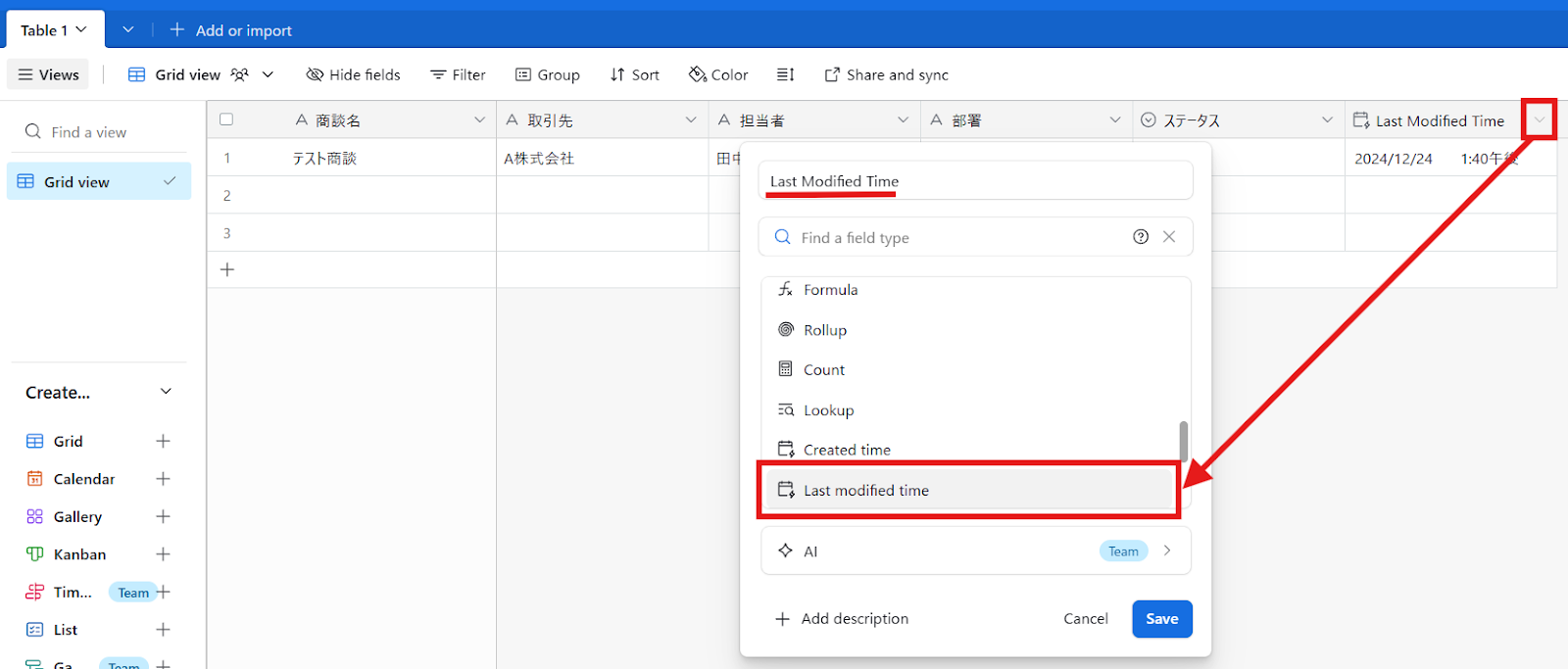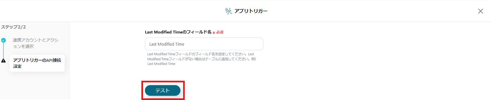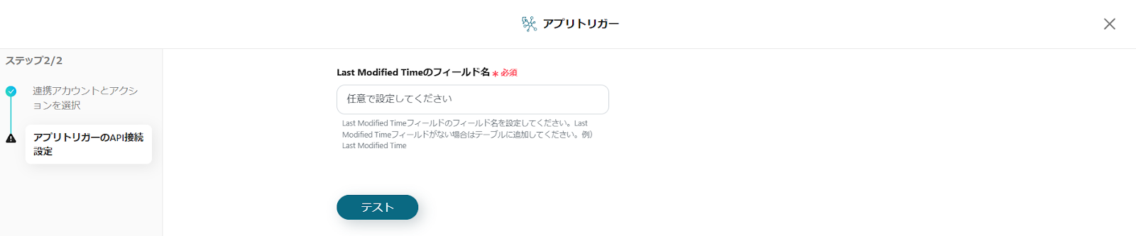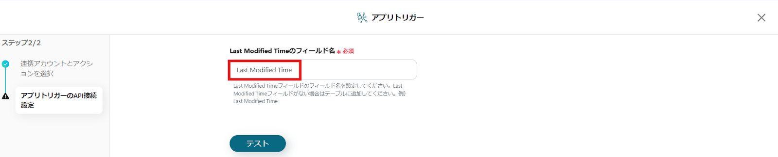 Airtableに設定したLast Modified Timeのフィールド名を入力してください。