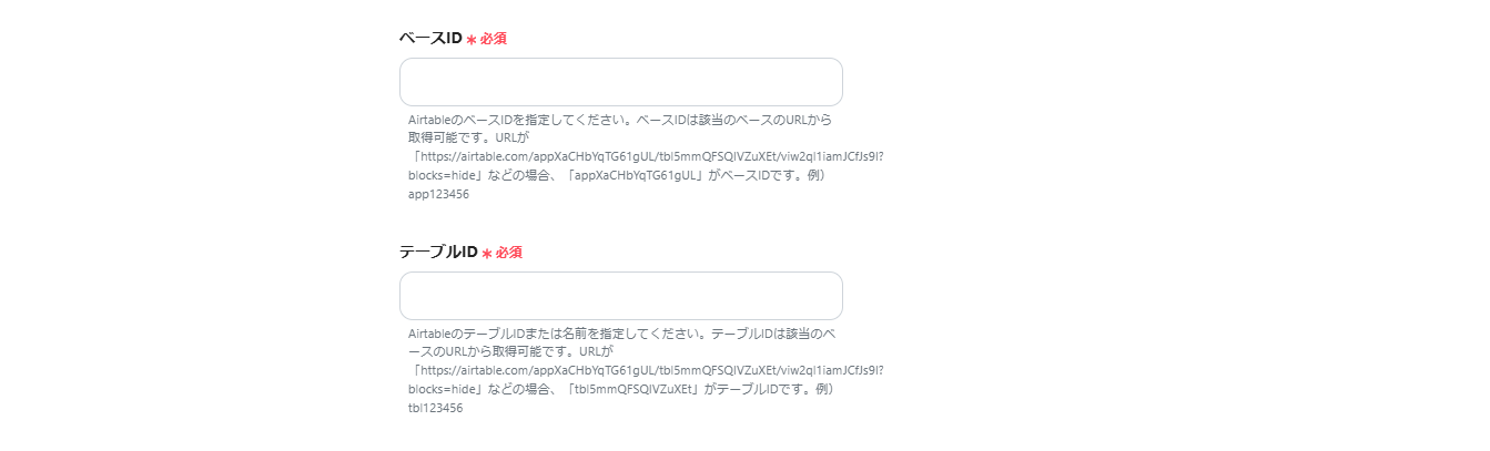 ボックス下部の補足に従い、AirtableのURLからコピー&ペーストしましょう。