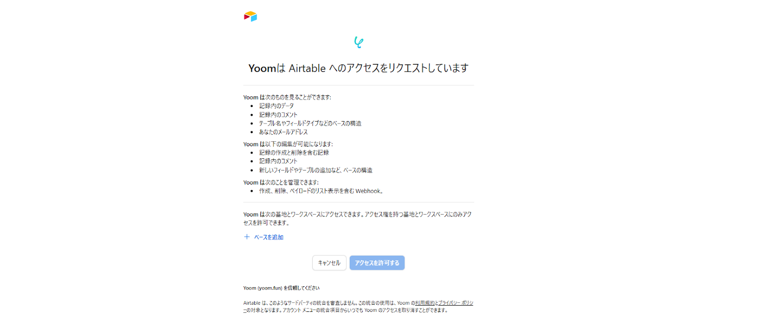 ベースの追加が完了したら「アクセスを許可する」を押します。