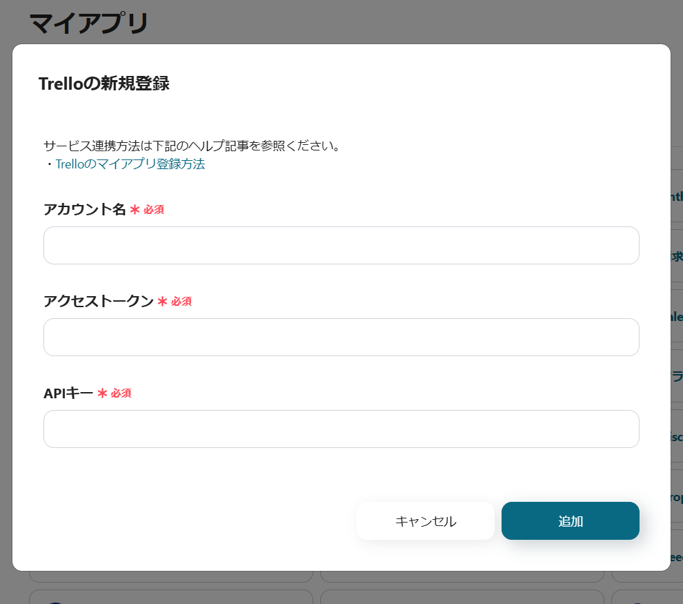 Trelloのマイアプリ連携についてから再取得することも可能です。