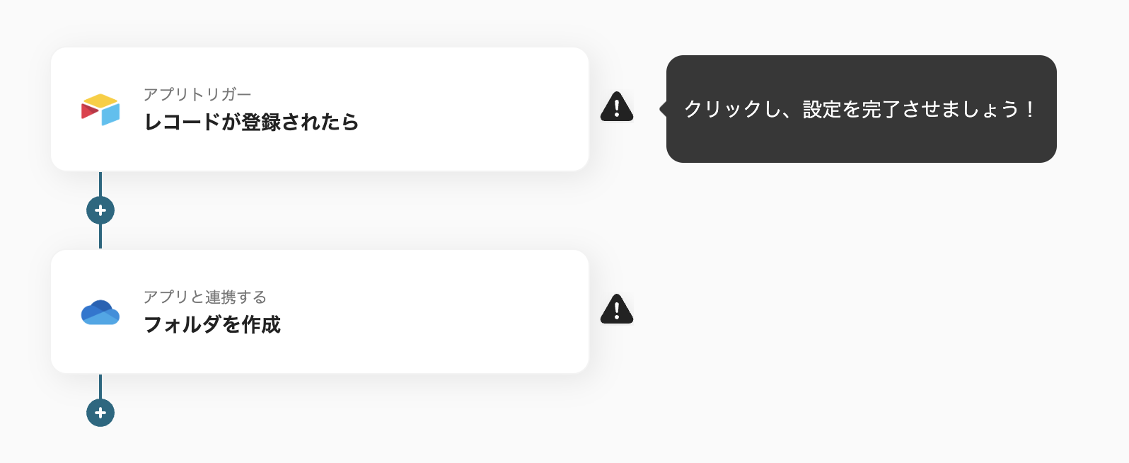 具体例として、Airtable側で登録した新規取引先の情報を基に、OneDrive側で新規フォルダを作成するため、情報の整合性を確保したままデータが登録されます。