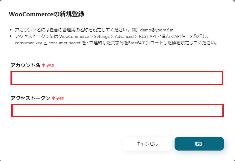 アカウントとアクセストークンを入力し、「追加」をクリックしてください。