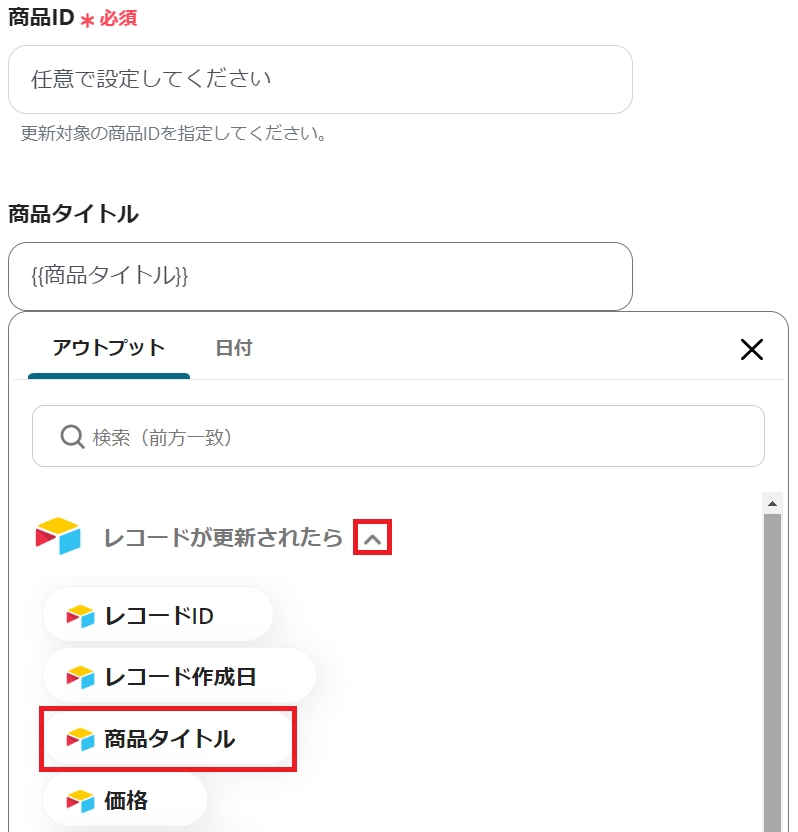 以下の画面が表示されたら、「商品ID」を設定してください。