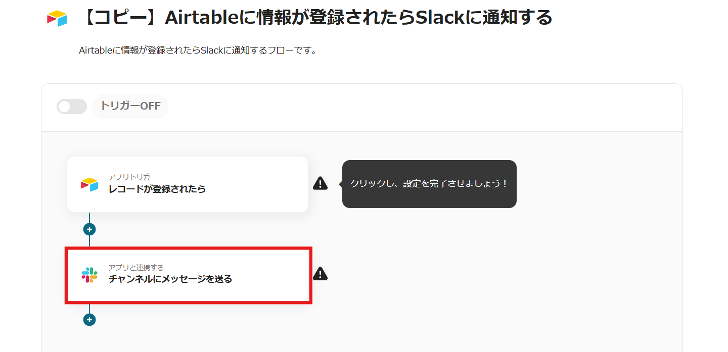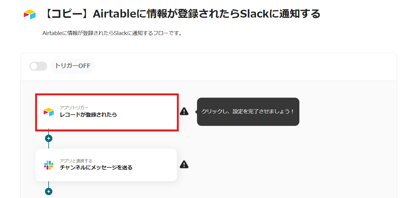 Airtableに情報が登録されたらSlackに通知するフローです。