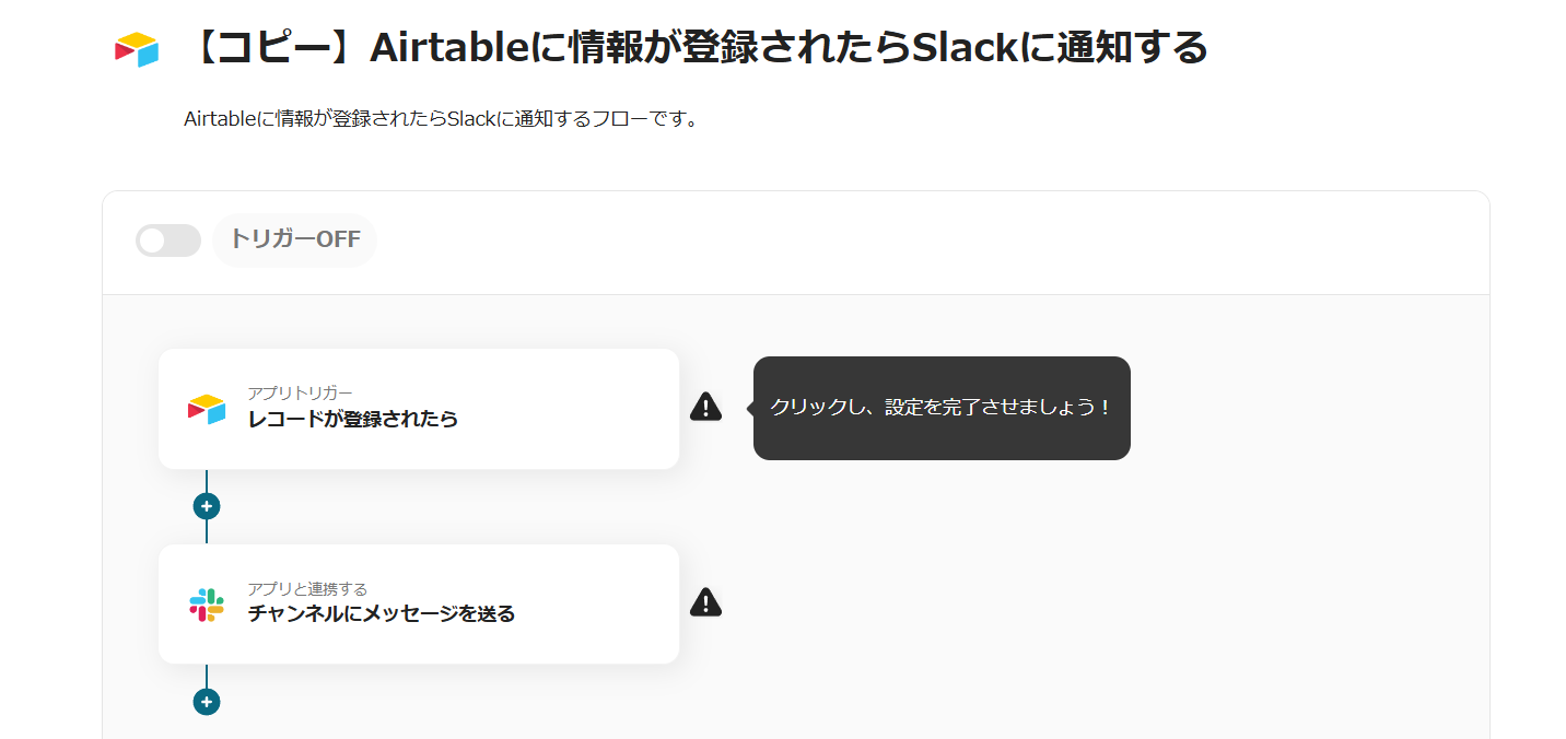・トリガーボタンをONにして、AirtableとSlackの連携動作を確認
