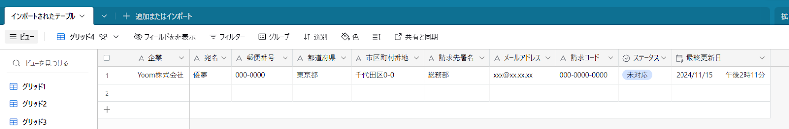 今回はステータスが完了となることで請求管理ロボに請求先データが登録されます。