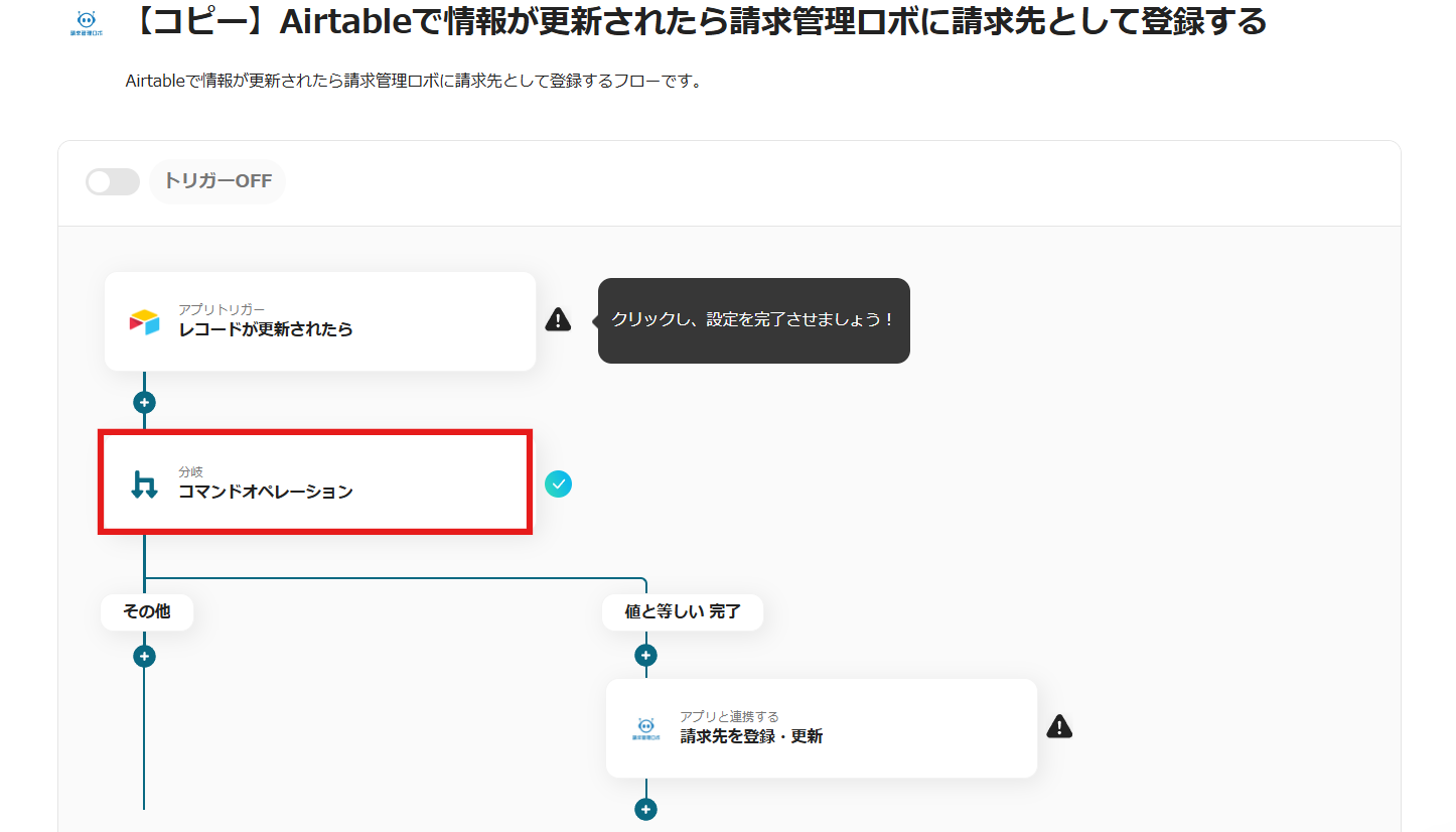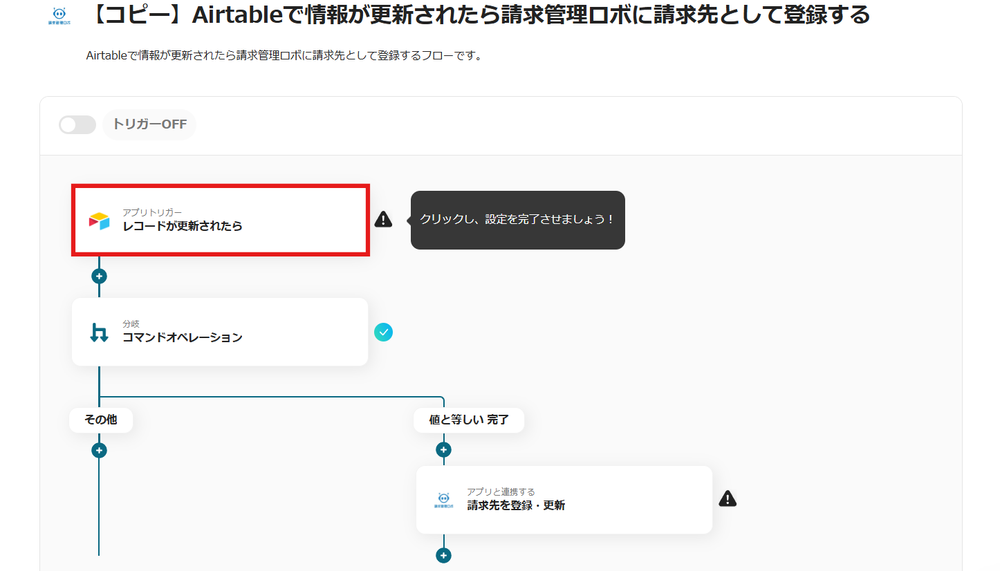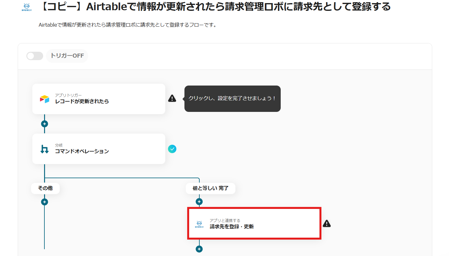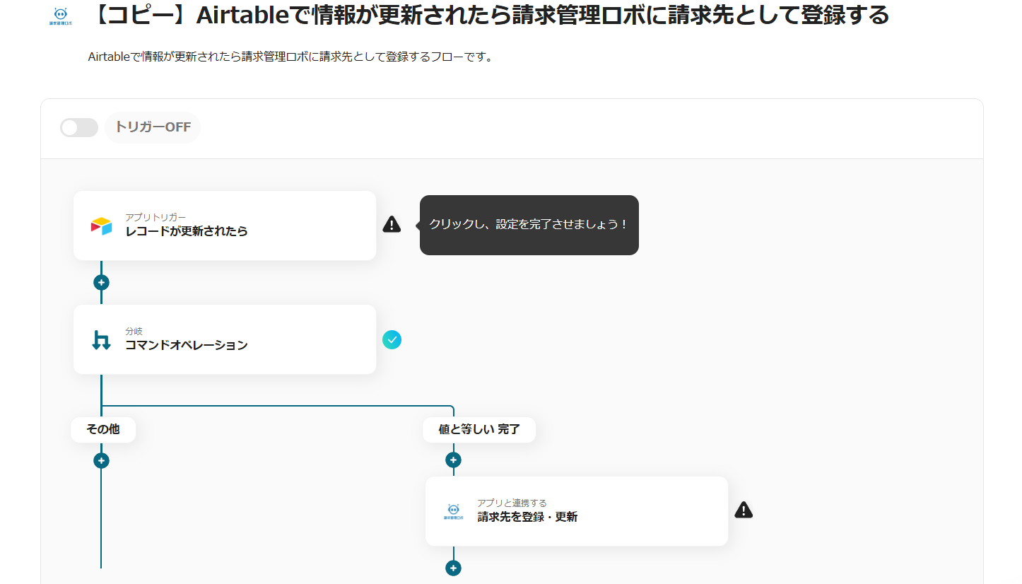 ・トリガーボタンをONにして、Airtableと請求管理ロボの連携動作を確認